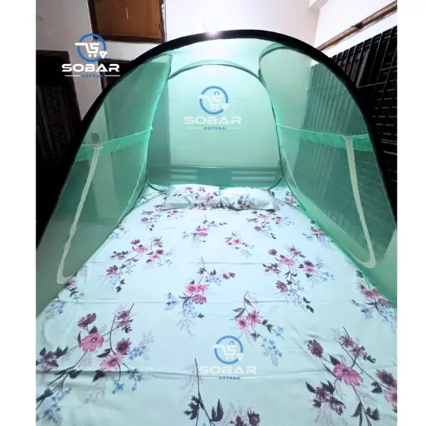 স্মার্ট মশারীর (Pop up Folding Moshari Double Sky Blue) মাপ=দৈর্ঘ্য ৭ ফিট, প্রস্থ ৪ ফিট, হাইট ৩.৫ ফিট (দুইজন প্রাপ্ত বয়স্ক মানুষ বা মা ও দুইজন শিশু একসাথে থাকার জন্য উপযুক্ত), আমরা মশারিতে এসি নেট ব্যবহার করিছি যেটা অত্যন্ত সূক্ষ্ম মশা ঢুকার কোন সুযোগ নেই। হ্যাঁ, আমাদের পপ-আপ মশারি ওয়াশ করা খুব সহজ। বালতিতে ডিটারজেন্ট পাউডার গুলিয়ে মশারি ফোল্ড করে দুপাশ চুবিয়ে নিয়ে পরিষ্কার পানি দিয়ে ধুয়ে নিলেই হবে।